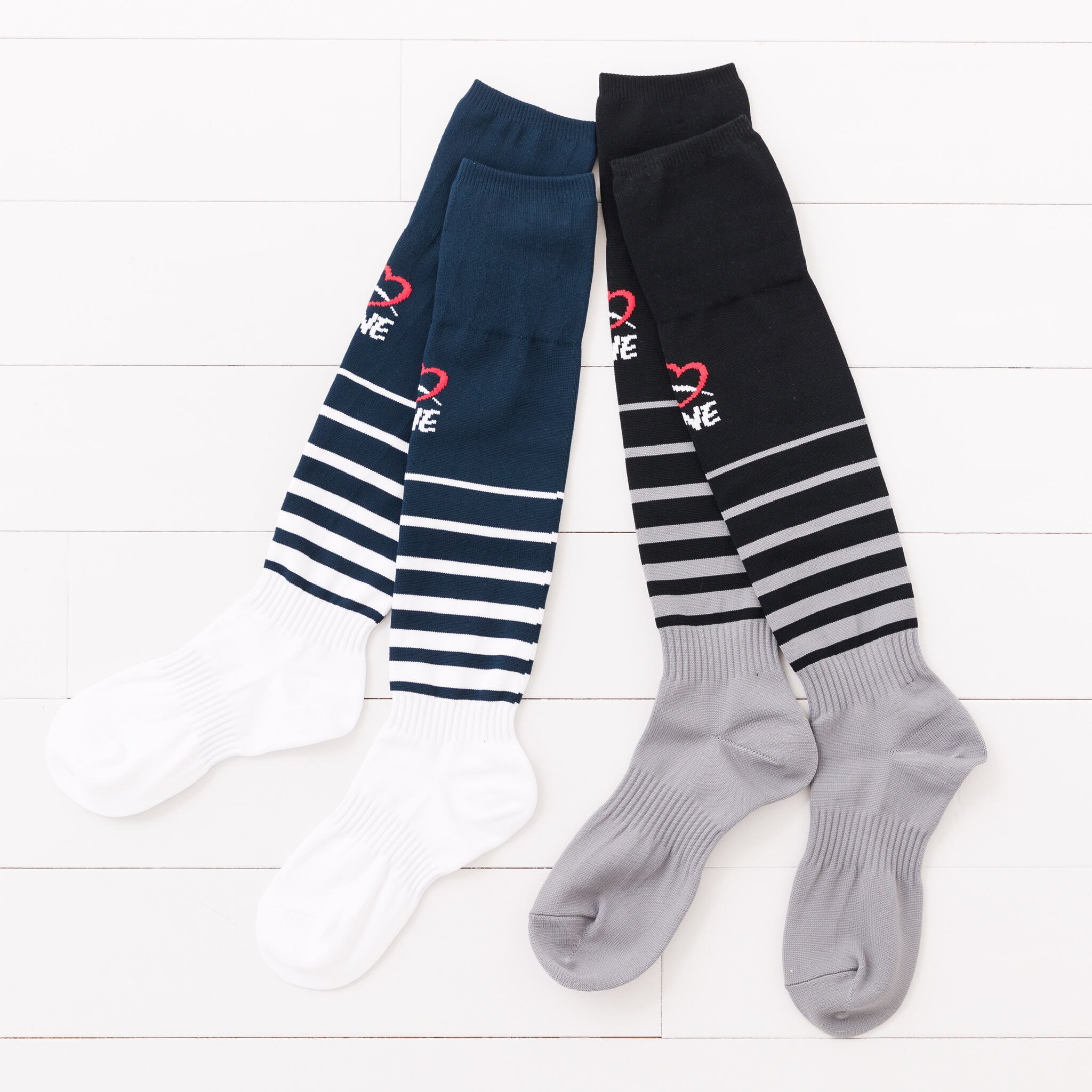BOEDER柄のロングソックス。